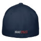 Fits well due to elastic edging, not adjustable. Good qualty material. Good quality embroidering. Subtle lettering (white on beige) just as my wife likes.