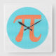 Math geek Pi symbol, orange and blue Square Wall Clock