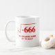 Math humour mug - square root of -666 - The Imaginary Number Of The Beast -in bloody red lettering. Choice of ceramic mug or travel mug styles.