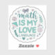 Celebrate your passion for problem-solving and puns with this adorably nerdy “Math is my love language” sticker! Designed with a soft, playful font and rounded edges, this cute decal blends affectionate vibes with clever mathematical charm.