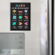 Playful math artwork with plus, minus, times, divide, equals, percent, greater than, less than and not equal. A friendly learning themed layout that shows how math concepts stay in balance. Great for teachers and students.