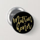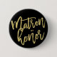 'Matron Of Honor' Trendy And Stylish Gold Brushed Script Calligraphy On Black Modern Bridal Party / Wedding Party / Wedding Rehearsal / Bachelorette Party Pin Button.