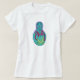 This shirt features a colourful matryoshka russian nesting doll graphic print in blue, pink and green. Makes a bold, contemporary fashion statement.