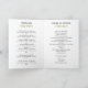 Matte black folded funeral program with elegant white and green fonts. On the cover, a photo of your loved one along with their name and years living. Inside you can write the obituary and program. On the back you can add acknowledgements. Folded celebration of life program personalized with an oval photo of your loved one framed by greenery.