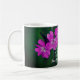 Inspirational quote scripture mug depicts three pretty pink wildflowers and features Bible Verse Matthew 18:20, "Where two or three gather in my name, I'm there with them."