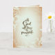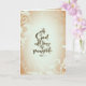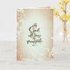 Inspirational Christian scripture greeting card depicts a light blue and brown vintage abstract background. It features Bible Verse Matthew 19:26, "With God all things are possible." The inside greeting and back scripture can be customized.*