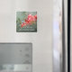 Inspirational scripture magnet depicts a nature photograph with a branch of beautiful pink flowers and green leaves. It features Bible Verse Matthew 19:26, Jesus said, “With man this is impossible, but with GOD all things are possible.”