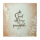 Inspirational Christian scripture ceramic tile depicts a light blue and brown vintage abstract background. It features Bible Verse Matthew 19:26, "With God all things are possible."