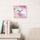 Inspirational quote wall clock depicts a beautiful leaf design with a green and pink splash background. It features a portion of Bible Verse Matthew 28:20, in in the words of Jesus, "I am with you always."