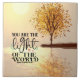 Inspirational quote ceramic tile depicts the sun shining on a tree and reflected in the water. It features a portion of Jesus - 'Sermon on the Mount' from Bible Verse Matthew 5:14, "You are the light of the world."