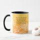Christian inspirational quote coffee mug depicts a prayer and an encouraging scripture on an abstract watercolor design with simple white sunflowers and a yellow and orange background. It features a portion of the Beatitudes that Jesus spoke in the Sermon on the Mount and recorded in Bible Verse Matthew 5:8, "Blessed are the PURE in HEART, for they will see God." All text can be customized to the details of your choice.