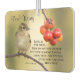 Inspirational 'quote "Don't Worry" air freshener depicts a cluster of cherries next to a sweet bird on a branch. It features Bible Verse Matthew 6:26, "Look at the birds. They do not sow or reap,... yet your heavenly Father feeds them. Are you not much more valuable than they?"~