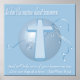 Christian Poster with Matthew 6:34. Be anxious for nothing. Blue with cross.
