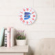 This wall clock features the “Matthew 7:7” KJV bible scripture verse in a bold print font with red letters white outline over a blue paint brush background plus bible citation from the King James bible. This clock is made for any wall and printed with a AcryliPrint®HD process and made from grade-A acrylic. Battery operated uses one AA battery for Indoor use only, not recommended for outdoor use.