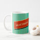 Ideal for vintage lovers, midcentury enthusiasts, or anyone looking to add a touch of classic charm to their decor. Perfect for modern homes or retro-styled spaces. matthew, aries, zodiac, symbol, nameplate, vintage, typography, teal, stripes, contrast ,retro, mid century modern, atomic age