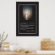 Cette affiche de l'Ecriture présente ce verset populaire : "Vous êtes la lumière du monde. Une ville qui se trouve sur une colline ne peut pas être cachée. "Les hommes n'allument pas non plus une bougie, et la mettent sous un boisseau, mais sur un chandelier; et elle donne de la lumière à tous ceux qui sont dans la maison. "Que votre lumière brille tellement devant les hommes, qu'ils voient vos bonnes oeuvres, et glorifient votre Père qui est dans les cieux." Matthieu 5 : 14-16 KJV/AV Une photo du soleil se levant dans un ciel sombre en mer est posée sur un arrière - plan noir et entourée d'une bordure blanche. Photo et design © de Cheryl Rogers, Tampa, FL.