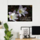 L'affiche de l'Écriture porte ces vers du texte du roi Jacques : "Considérez les lis du champ, comment ils poussent; ils ne peinent pas, et ils ne tournent pas : "Et pourtant je vous le dis, que Salomon dans toute sa gloire n'a pas été organisé comme l'un de ceux-là." Matthieu 6:28 & 29 Photo montre des lis de pluie dans un jardin de Floride.