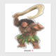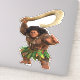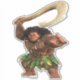 This striking image captures the formidable Maui, the legendary demigod from the animated tale of Moana, in a dynamic pose, wielding his magical fishhook. Maui's intricate tattoos, which chronicle his adventures and achievements, cover his muscular frame, telling stories of myth and might. His traditional skirt made of lush green leaves and his animated facial expression add to his larger-than-life persona. This graphic vividly brings to life Maui's charismatic and powerful character, embodying his role as a protector and hero of the islands.
