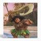 This striking image captures the formidable Maui, the legendary demigod from the animated tale of Moana, in a dynamic pose, wielding his magical fishhook. Maui's intricate tattoos, which chronicle his adventures and achievements, cover his muscular frame, telling stories of myth and might. His traditional skirt made of lush green leaves and his animated facial expression add to his larger-than-life persona. This graphic vividly brings to life Maui's charismatic and powerful character, embodying his role as a protector and hero of the islands.