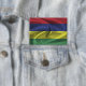 Button with the flag of Mauritius in wavy fabric style design. This design features the Mauritian flag colours and design with a beautiful waving material textured effect. This flag design is a great way to show you are proud to be from Mauritius.
