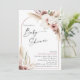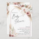 Perfect for a boho-chic baby shower, this invitation exudes a natural and earthy vibe. This rustic invitation features a beautifully crafted arched frame adorned with bohemian dried floral arrangements. The design includes an array of feathery pampas grass, terracotta and mauve flowers, and wispy brown leaves.
