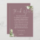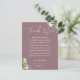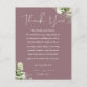 An elegant mauve floral greenery wedding celebration thank you reception card. Personalized with your special thank you message set in stylish typography. A special keepsake thank you for your guests. Designed by Thisisnotme©