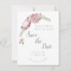 Des fleurs de mauve et de lavande avec des sprays de fougères entourent la faire-part de votre prochaine date de mariage. Une façon romantique de demander aux invités de sauvegarder votre date, customisez notre carte avec votre propre date mariage et emplacement.