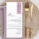 Why spend in place cards and menu cards when you can have an elegant All-in-one elegant Menu personalized with each guest name! Contemporary, simple and elegant design with beautiful modern hand written calligraphy. Stripe on the top right corner in mauve tone with guest name in black. Back in same mauve as stripe. Ability to change both stripe color or back by selecting "customize further". NOTE: please an individual order for each menu by adding guest name into menu, add menu into shopping cart; then come back to menu, add second guest name, add menu to shopping cart...continue with this process with all guest names on your list. For short first guest names, add with your keyboard spacebar a few empty "spaces" before the name, to center it better. Design available in a variety of color choices. Part of our "Mauve and Purple Event Signs and Products" collection with a variety of coordinating products available.