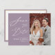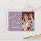 Mauve Purple Elegant Script Modern Photo Minimalist Wedding Save The Date Announcement Postcard. Let your family, friends and colleagues know that you have set a date for your wedding celebration with this elegant, stylish and modern wedding save the date invitation card. All the texts are pre-arranged for you to personalize easily and quickly with your own details.
