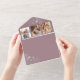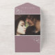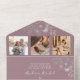 Celebrate your love with a touch of modern elegance and boho charm with our botanical-inspired mauve purple all-in-one wedding invitation! Featuring rustic vintage silver floral lace accents, this design exudes timeless sophistication. Personalize it with four cherished photos of the happy couple, beautifully capturing your journey together. Simplify RSVPs and provide additional information effortlessly with our included website and QR code. Let your love story bloom with this perfect fusion of modern botanicals, vintage flair, and bohemian allure.