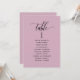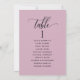 Help your guests find their table with this elegant mauve modern seating plan cards with guests names. Double sided cards so guests can look from both, front or back for their names. Clear space all around giving you the liberty to use clips or punch hole for hanging displays, or use table holder/frame. mauve background and black text. Modern hand written calligraphy details. Several colour options. Have all table numbers in same colour or mix colours according to your event's colour theme. Part of our "Mauve and Purple Event Signs and Products" collection with a variety of coordinating products available, including table number cards and menus.