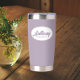 Gift your wedding groomsman with this personalized, stainless steel, thermal tumbler with his name in stylized script in a white oval design. Background and script is a trendy mauve colour. Personalize your thermal tumbler by editing and replacing groomsman's name with desired name.