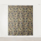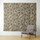This tapestry features crows, dragonflies, and beetles surrounded by flowers and leaves in shades of mauve and grey on a tan background.