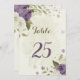 mauve white flowers greenery table number card