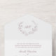 Elegant all in one wedding invitation featuring a clean and timeless design with your monogram inside of a wreath crest. Use the template to generate a QR code on the attached RSVP card.