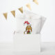 This adorable illustration features Max the Dog sitting patiently, fully embodying the holiday spirit—even if he looks slightly confused by it all! He is dressed in a floppy red Santa hat and a chunky red collar, which is charmingly adorned with a green Christmas ornament. Max's classic, expressive eyes and loyal posture make this image the perfect, heartwarming graphic for anyone who loves the true hero of the Grinch story!