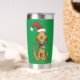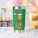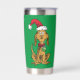 This adorable illustration features Max the Dog sitting patiently, fully embodying the holiday spirit—even if he looks slightly confused by it all! He is dressed in a floppy red Santa hat and a chunky red collar, which is charmingly adorned with a green Christmas ornament. Max's classic, expressive eyes and loyal posture make this image the perfect, heartwarming graphic for anyone who loves the true hero of the Grinch story!