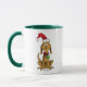 This adorable illustration features Max the Dog sitting patiently, fully embodying the holiday spirit—even if he looks slightly confused by it all! He is dressed in a floppy red Santa hat and a chunky red collar, which is charmingly adorned with a green Christmas ornament. Max's classic, expressive eyes and loyal posture make this image the perfect, heartwarming graphic for anyone who loves the true hero of the Grinch story!