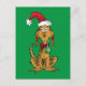 This adorable illustration features Max the Dog sitting patiently, fully embodying the holiday spirit—even if he looks slightly confused by it all! He is dressed in a floppy red Santa hat and a chunky red collar, which is charmingly adorned with a green Christmas ornament. Max's classic, expressive eyes and loyal posture make this image the perfect, heartwarming graphic for anyone who loves the true hero of the Grinch story!