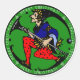 Decorate your envelopes, gift packages, & more w/ IconDoIt's original variation on a classic 1920's Maxfield Parrish elf character w/ Santa Claus Red & black polka dot leggings + cobalt blue pancho against a rich green background & encircled w/repeating phrase "Merry Christmas!". Choose from 2 sizes