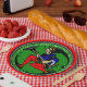 No better way to set your holiday table or serve Christmas cookies (or gift them) than on HoMeArt's original variation of a pre-WWI Maxfield Parrish elf w/ white & black polka dot leggings + the greeting "Merry Christmas" on a kelly green background.
