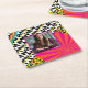 Maximalist Birthday Photo Patterns Colourful Square Paper Coaster