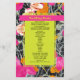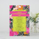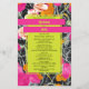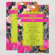 Neon yellow rectangle shape over pink orange and peach modern floral with dark marbleized design. Names are neon yellow on hot pink bars.