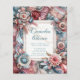 Maximalist wedding themed item with text template fields and graphics featuring an eclectic mix of decoupage, fabrics, ribbons in pastel shades of blue, pink, teal. Scrapbook decoupage style item with a shabby, country, vintage floral vibe.