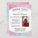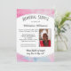 Serene Memorial Service invitation with customizable inscription MAY FLIGHTS OF ANGELS SING THEE TO THY REST. The design includes customizable photo and service details. The background is a pastel pink and pastel blue smoky effect with dark grey typography.