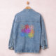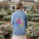 This women's denim jacket has a nature design of sets of three flowers in fading shades of the same colour. If you like the design but want different colours, message me.
