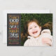 Hand-lettered religious message for Christmas beside your favourite photo. Additional photos can be added over the background pattern on the back side of the card.