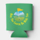 This fun design shows a golf course, with a hole and flag in the foreground. The curved text, at the bottom, of the design reads 'May The Course Be With You.' You can customize this can cooler by changing the background colour.