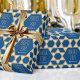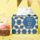 Send your congratulations with this 'Mazel Tov' personalized gift wrap. Perfect for family and friends to celebrate many different occasions, including Hanukkah, Bar Mitzvah, Bat Mitzvah, birthdays, weddings, graduations, new home, new job and more! A stylish design featuring a Star of David geometric pattern in blue, white and gold colour.