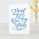 A mazel tov card for a bar mitzvah, hand-lettered in watercolor in blues and greens.